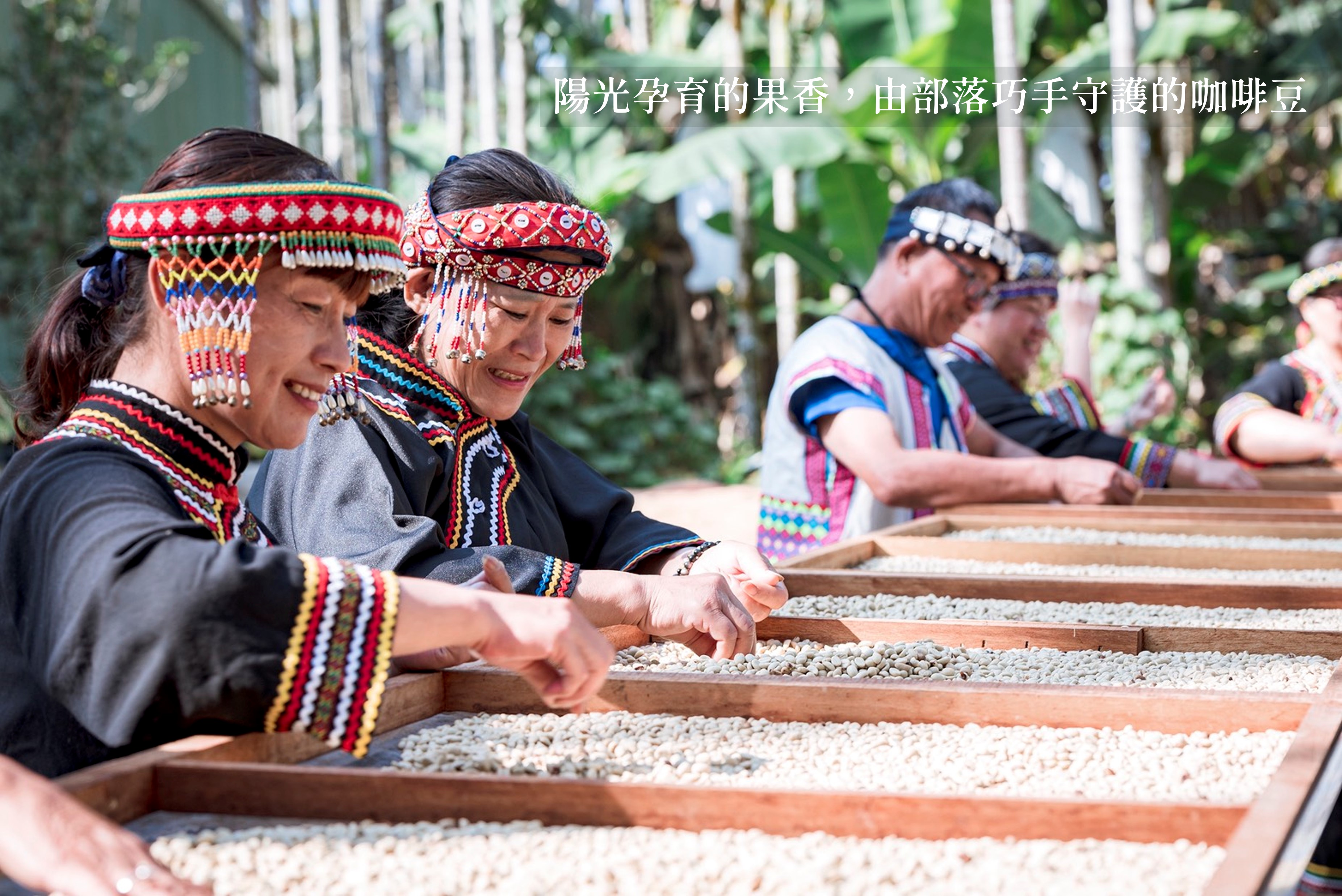 咖啡樹曾與檳榔樹共生十餘年,檳榔提供遮蔭,咖啡根系深扎土壤,減緩坡地沖刷,展現部落智慧——「樹與樹、土與人」的平衡。高海拔與日夜溫差,使果實成熟緩慢,風味層次豐富;充足日照賦予咖啡鮮明甜感與乾淨口感。